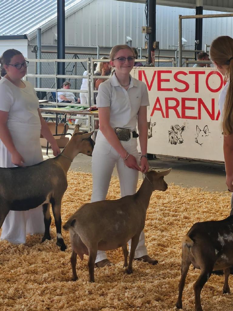 competed in Peewee Showmanship and Junior Doe classes where she placed first and fourth, respectively.